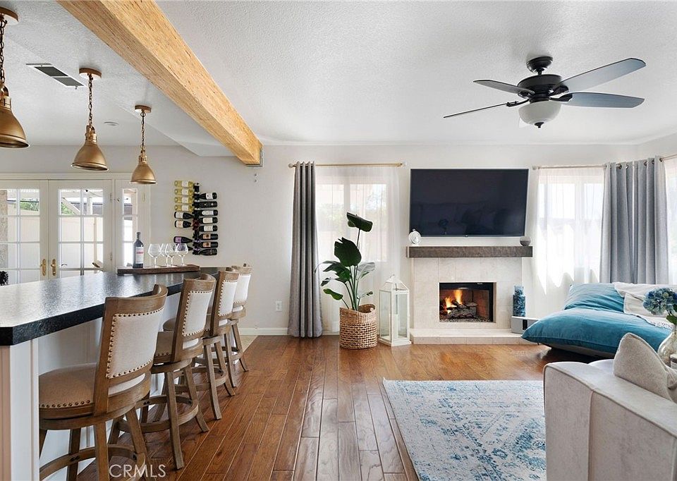 The most HIGHLY UPGRADED home in the neighborhood, with one of the LARGEST backyards, allowing plenty of space for a pool! This gorgeous home has been remodeled top-to-bottom with too many timeless details to list. 4 bedrooms and 3 bathrooms, with one FULL BED AND BATH DOWNSTAIRS. The biggest game-changer was the removal of a wall between the family room and kitchen, creating a fabulous Great Room experience filled with tons of natural light. Hardwood floors all throughout, marble fireplace, leathered granite countertops, exposed structural beam, 36" VIKING RANGE, MASSIVE island with extra deep drawers for pantry storage, reverse osmosis water filtration, solid-core interior doors, and French doors leading to the patio. Drought-tolerant landscaping and raised garden bed. Roof was redone in 2019. NO MELLO ROOS! HOA insures the structure, maintains the front yard, and includes community pool, playground, tennis and basketball courts. This is truly a STUNNER that won't last long!