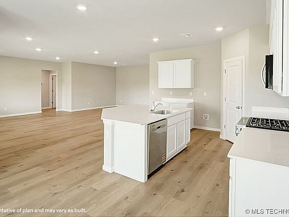 The Frisco is a well-designed single-story home offering 4 bedrooms and 2 bathrooms. A welcoming foyer leads into the open-concept kitchen and breakfast area, ideal for casual dining and entertaining. The kitchen features a breakfast bar, sleek countertops, stainless steel appliances, and a corner pantry for ample storage.