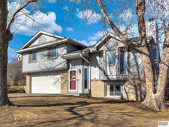 NEW NEW AND NEWER! Updated Millard multilevel in quiet cul de sac. South facing and situated on a fully fenced oversized lot. A grand entryway w/ custom drop zone and decorator chandelier provides an amazing first impression. New interior paint and carpet throughout. Open kitchen/living room concept with cathedral ceilings, plenty of cabinet space including island and pantry, and SS appliances. 3 bedrooms up, with large primary suite: dual closets, 3/4 bathroom, and tray ceilings! Basement has large recroom, beautiful fireplace, and secret storage under stairs! HVAC/mechanicals 2022(furnace 2015/coil 2022). Roof approx 5 years. And the backyard...WOWZA! One of the largest decks you've seen, inside of the huge backyard w/ playset and storage shed! Whether hosting summer barbecues, cultivating a garden, or simply enjoying a quiet morning coffee, this backyard offers endless possibilities.
