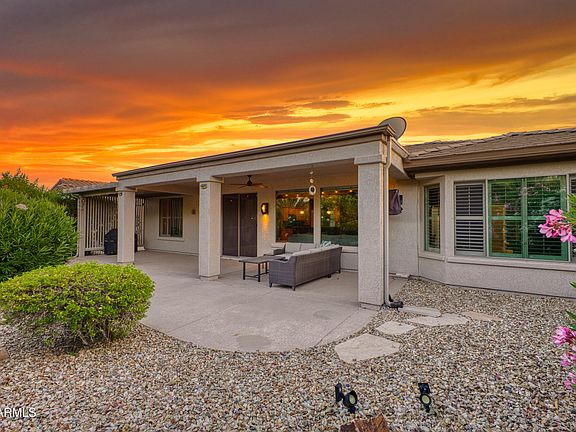 Popular BORGATA features a 280 sq ft casita. 2,174 total sq ft, 3BD/3BA/DEN on cul-de-sac street. Beautifully landscaped yard is a private oasis from the extended patio. Many upgrades include: Beautiful tile in all the right places. Newer heating/cooling. Kitchen granite counter tops with backsplash, R/O, stainless appliances/gas cooking, skylight and pantry. Breakfast nook shutters, bay windows and door out to courtyard at the casita. Casita that includes Murphy bed,3/4 bath with closet, mini fridge and microwave. Granite in all bathrooms. Primary suite has bay window, shutters, dual sinks, custom walk in shower and walk-in closet. Inside laundry has custom cabinetry, sink,refrigerator and W/D. Exterior paint 2025. Leased solar is a savings on utilities. This and so much more!