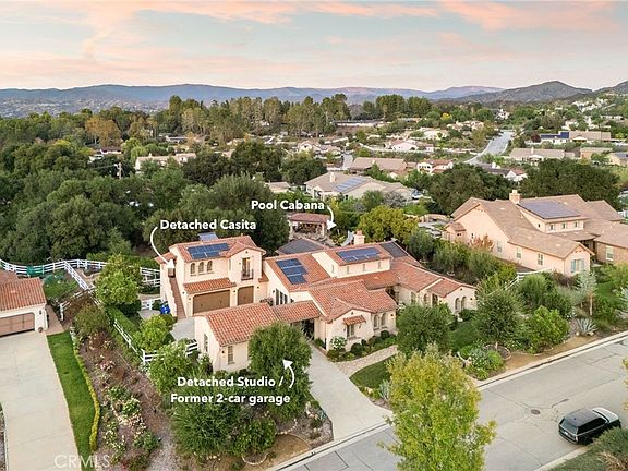 A Sprawling Single-Story Estate with Resort-Caliber Grounds! Welcome to one of the most desirable estates in The Preserve in Sand Canyon—a gated, prestigious community known for privacy, beauty, and luxury living. Set on 1.18 acres, this extraordinary single-story home offers 3,841 sq ft of sophisticated living space with 3 bedrooms, 4 bathrooms, and a dedicated office, plus two exceptional detached structures that elevate the lifestyle experience. The ~1,000 sq ft detached casita sits above the oversized 3-car garage—an ideal space for multi-generational living, guests, or an incredible studio retreat. A second detached structure, originally a 2-car garage, has been transformed into an impressive ~900 sq ft studio/flex space and can easily convert back to garage use if desired. Designed for those who love to entertain, the interiors are warm, inviting, and seamlessly connected to the outdoor spaces. The expansive covered patio features an outdoor kitchen, built-in heaters, fireplace, TV, and speakers—creating an effortless extension of the home. Step into your very own private resort: a sparkling pool with slide and water features, a cabana with fireplace, kegerator, pool bath, and outdoor shower, plus a fire pit and built-in audio throughout the yard. The property is packed with fun—bocce ball court, basketball/pickleball court, a professionally designed putting green with “Caddy Shack” storage, oak tree grove, culinary garden, and fruit trees—all illuminated with thoughtfully designed landscape lighting. Modern conveniences complete the package: owned solar panels, solar pool heating, backup generator, and a comprehensive security system with cameras inside and out. Every inch of this estate reflects pride of ownership and the discerning taste of those who appreciate refined living, privacy, and a true indoor–outdoor lifestyle. This is more than a home—it’s an experience.