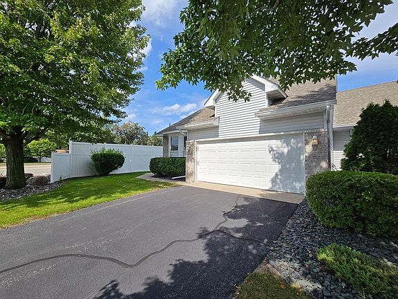 This beautiful end-unit townhome offers the perfect blend of comfort and convenience with desirable one-level living. The open floor plan is designed for both functionality and style, featuring a vaulted ceiling in the living room with a cozy fireplace as the centerpiece. The kitchen boasts hardwood floors, a center island, and plenty of room for cooking and entertaining. The primary suite is a true retreat, complete with a large bath showcasing two tiled walk-in showers and a double vanity. A large patio door floods the home with natural light and opens onto a 2 years old maintenance free deck, perfect for relaxing or entertaining outdoors. Don't miss this fabulous home!