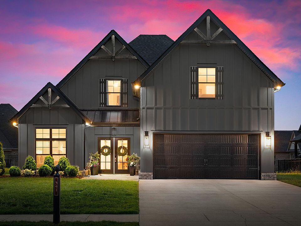 Seller offering $25,000 in concessions!!!Our MOST COVETED floorplan~ Our Cherbourg is UNBEATABLE!!! Get ready for this all Iron Ore (almost BLACK) hardi board exterior w/ stained gable decorations, matching Rustic Board & Batten Z Shutters, and accents?! This Craftsman/Farmhouse Style home is the epitome of LUXURY inside & out! Stunning Open Concept on main level w/ vaulted ceilings with beautiful pine beams!! Upgraded Modern lighting throughout, & Farmhouse style shiplap fireplace! She boasts Engineered Hardwood in Main Living Areas & REAL HARDWOOD STEPS!!! Immaculate Chef's Kitchen w/Tons of Custom Cabinets w/ soft close doors & drawers, open shelving, QUARTZ Countertops, Tiled Backsplash & Stainless Appliances including a GAS STOVE! HUGE Owner Suite on Main*WIC*Dual Vanities w/ QUARTZ Counters*Separate Garden Tub & Tiled Shower! Another bedroom on main too! Spacious Secondary bedroom on main! Large BONUS ROOM on second level w/ 2 bedrooms & full bath! Zoned for HIGHLY COVETED Kirkwood Schools!