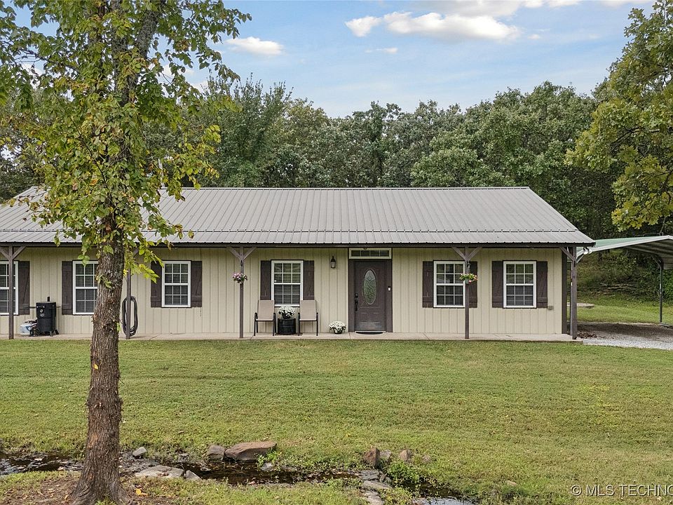 Sellers offering $5000 in either closing costs or rate buy down. Barndominium on 2.5ac m/l - 3/2/2 + formal dining cb office - balance modern living and proximity to nature. Spacious living room features cathedral ceiling and French doors leading to backyard. Cook in style - the kitchen is a chefs dream with plenty of countertops and ample storage. Primary bedroom has a huge walk-in closet, full bath with tile-surround and built in niche. Home also features a separate mudroom and laundry room. Dog run. 8x10 shed. All electric. Gated entry, this property is a dream come true for those seeking an idyllic rural lifestyle. Whether you're an aspiring farmer, a nature enthusiast, or simply in search of a peaceful retreat with a small stream running in front of the home, this property has it all.