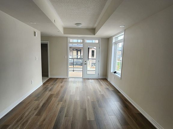Brand-new 2-bedroom, 2-bathroom stacked townhouse offering over 1,000 sqft of modern living. This spacious main-floor unit features an open-concept design with wide-plank flooring, no carpeting, and beautiful finishes, including white cabinetry, quartz countertops, and stainless steel appliances. Perfect for entertaining, the home also boasts a private balcony/patio, in-unit laundry, central AC, and heating. Conveniently located minutes from Milton GO, public transit, parks, shopping, and Highways 401/407/403, this property is a nature lover's dream. Enjoy nearby Niagara Escarpment trails, conservation areas, winter skiing at Glen Eden, and the new Wilfrid Laurier University campus. Utilities and rental hot water are excluded. Includes one dedicated parking spot. Don't miss out on this stunning rental opportunity in a vibrant, amenity-rich neighborhood!