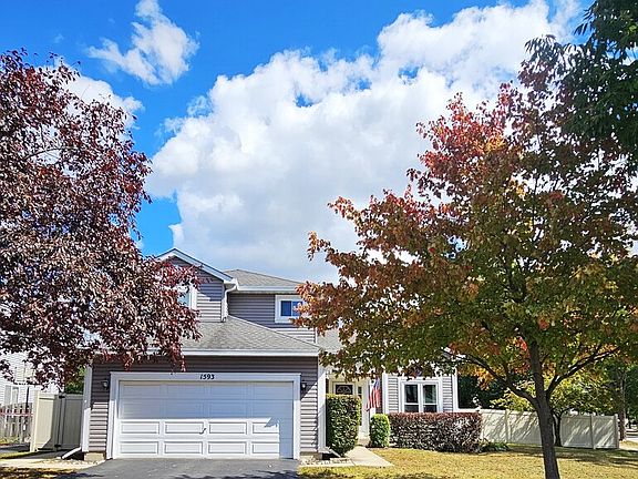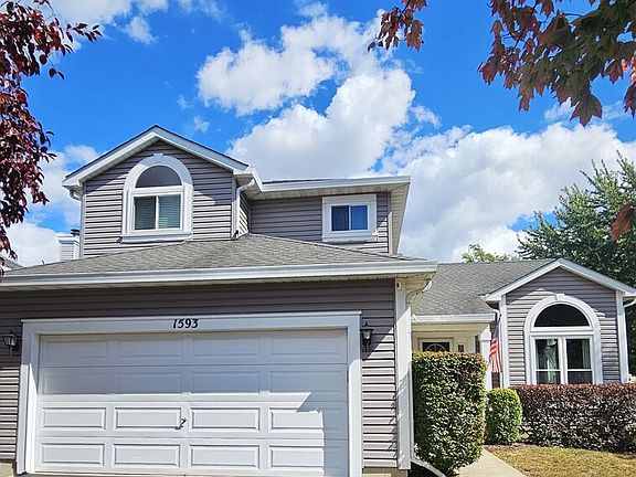 This home in the much sought after Elysian Fields subdivision has something for everyone, parks for outdoor enjoyment, Great America for the thrill seeker and easy access to highways for the traveler. That's just the beginning, with 3 levels of finished living space, there is privacy for everyone, the backyard is a true retreat, offering space to entertain, relax and play in the above ground heated swimming pool, large patio great for entertaining. MANY, MANY updates have recently been done. Brand new windows and sliding back door by Climate Solution (2023), premium vinyl plank flooring on the main level )2020), new carpeting, finished basement with a wet bar and half bath, newer siding, new fence, new light fixtures, new doors and trim, recently painted, updated 1st floor bath, furnace 2016, all SS kitchen with quartz counters. Family room with a fireplace makes it cozy and inviting. Hurry, this one will go fast.
