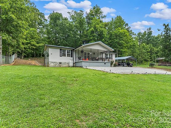 Immaculate 3 BR, 2 BA manufactured home just 2 miles from Lake James and a short drive to historic downtown Marion! Situated on a 1-acre lot, this well-maintained home offers a fenced backyard, large outbuilding, and a 2-car detached carport. Enjoy morning coffee on the covered front porch or entertain on the spacious covered back deck. Inside features an open floor plan with a cozy gas log fireplace, stainless steel appliances, and plenty of natural light. A perfect blend of comfort, convenience, and location.