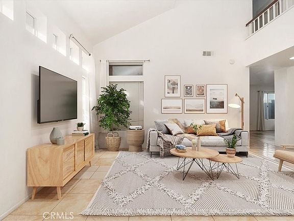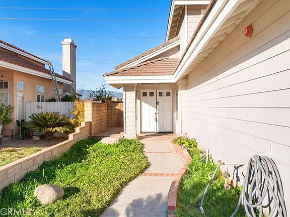 Welcome to this 2-story home at the picturesque base of the Jurupra Hills in the community of Southridge in Fontana! It features an open floor plan with 4 bedrooms and 3 baths, including a convenient first-floor bedroom and bathroom. The bright and airy, the living and dining areas boast high ceilings and large windows. The modern kitchen includes elegant quartz countertops, recessed lighting and newer appliances. Enjoy a cozy family room with fireplace. Feel confident for cool summers with a newer energy efficient AC unit. Enjoy a soft water filtration and system and 2 year old water heater. Experience additional privacy in your backyard with no rear neighbors and the convenience of a wrap-around cement patio, perfect for entertaining.