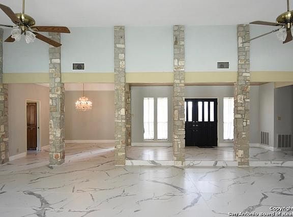 Inviting fireplaceOpen floorplanHigh ceilingsDramatic entryLots of windowsStone columnsCorner lot