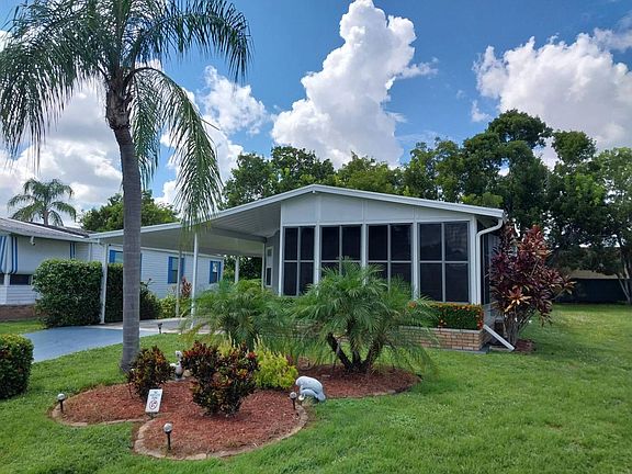 Welcome to 15934 Blue Skies Drive Located in the gated, land-leased 55+ community of Bayshore Village, this charming 1991 Fleetwood Barrington Model is fully furnished and move-in ready! Home highlights: 2 Bedrooms and 2 Bathrooms. Enclosed lanai with newer slide-to-side tinted vinyl windows-perfect for relaxing in comfort while enjoying the beautifully landscaped yard, private backyard for peaceful outdoor living. Oversized shed for extra storage Long covered driveway & carport-no parking worries here New metal roof with upgraded 5/8" and 1/2" plywood. New waterproof vinyl flooring throughout. Spacious living room ideal for movie nights or football parties. Separate dining area for entertaining. Eat-in kitchen with newer LG appliances (approx. 3 years old) Laundry room with upgraded LG washer & dryer. Primary suite with double sinks, walk-in shower, and dual closets, guest bedroom with large closet and nearby full bath with tub/shower combo. Community Perks: Bayshore Village offers a vibrant lifestyle with: NEW fitness room, heated pool (seasonal), clubhouse with library, pool table, TVs Bocce, shuffleboard, and horseshoe courts, tons of resident-planned events.Convenient location near shopping, dining, and I-75.Monthly Fee: Approx. $817 Includes lot rent, basic cable, trash, and lawn care.