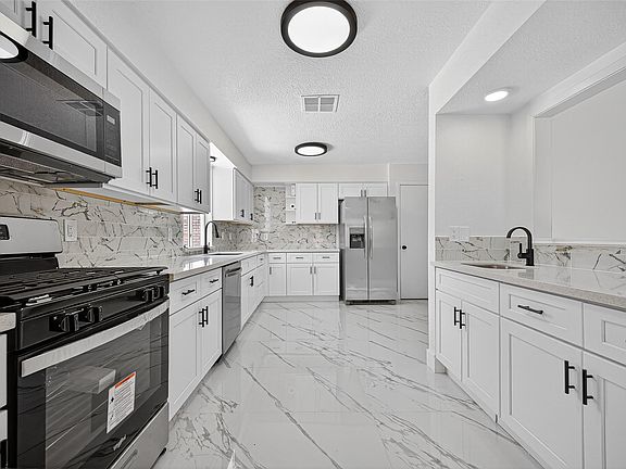 Beautifully updated 4-bedroom, 2-bath home in a prime location! Some photos are virtually staged. Move-in ready property features a spacious layout with a bright, modern renovated kitchen complete with new cabinetry, stunning quartz-style countertops and backsplash, stainless steel appliances, included and sleek tile flooring throughout. Recent roof & A/C, a rare private interior atrium, bringing in natural light and creating a relaxing space perfect for morning coffee, plants or serene reading nook. Inviting brick exterior offers charming curb appeal, a private gated entry, and an extended driveway leading to a detached 2-car garage with plenty of parking space. Enjoy generously sized bedrooms, refreshed baths, and great natural light that enhances every room. Outside this property offers a large backyard with pool perfect for relaxing or hosting gatherings. Conveniently located near Energy corridor, major highways, dining, shopping & entertainment. Come see this gem and fall in love!