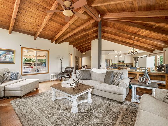 **Home available now with a lease through May 31, 2026. Owners will be returning to occupy the home in June 2026.** Gorgeous country property on 2.5 acres with outbuildings, storage sheds and plenty space to store toys, a trailer, a boat, RV, etc. Property is fully fenced and gated. Includes solar, water well and bi-weekly yard maintenance. Mini-orchard including: Limes, Pomegranates, Plums, Guavas, Ollalieberries, Grapes, Oranges, Blood Oranges and many, many more - all watered from the well so no need to worry about high water costs. Centrally located & close proximity to Valley Center Primary School, Middle School and High School. Just a short 15 minutes into Escondido. This property also has a well for landscaping irrigation, solar, a massive storage area underneath the home and a garden area. There is a very large fenced garden (with irrigation), fenced area for dogs and a chicken coop. There is a 6-stall horse barn, but will need the corral dividers completed if you do plan on boarding horses. One of the stalls is currently used as a fully-equipped home gym, which will stay for tenant use. Enjoy the vaulted exposed wood ceilings, spacious country kitchen and spa-like master bathroom in your country retreat.