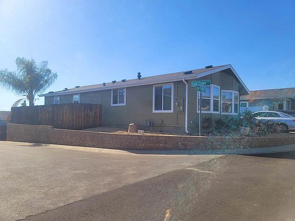 Welcome home to the beautiful community of Woodcreek Estates in Flynn Springs/Dunbar area of our east county! Just off the 8, this corner lot 3 bedroom 2 bath home with a 2 car garage is looking for it's next owner!! Tons of natural light, vaulted ceilings, laundry room with full side by side, central air and heat, 2 car attached garage with room for all your stuff or cars and a back yard and patio space without having to see your neighbors windows behind you, like many do in this park! Instead enjoy the mountains that surround this community and the sunshine!!! The kitchen has great space, a gas stove, plenty of counter space to cook like a chef and enjoy! The community of Woodcreek Estates is an all age pet friendly park and has a pool, splash pool, jacuzzi, gym, playground, basketball courts, billiards and a clubhouse. This home is close to the 8 freeway and the local elementary and middle schools. Take a look today!!!