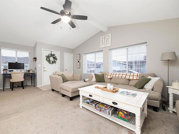 This charming 3 bedroom 2 bathroom manufactured home in Woodcreek Estates is waiting for you! Light, bright and open floor plan with high ceilings and a BRAND NEW roof! Newer garbage disposal and water heater. Large master suite with backyard access. Attached 2 car garage with built in cabinets, additional storage shed and custom playhouse with small patio (or second shed?), provides ample room to store all your belongings. Separate laundry area inside. Private backyard with covered patio. All ages community, land lease currently $1221.