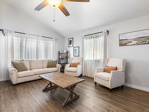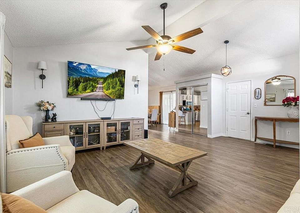 Beautifully maintained 3-bedroom, 2-bath manufactured home in the highly desirable Woodcreek Estates, one of San Diego’s premier all-ages communities. Offering 1,572 sq. ft. of spacious living, this home features vaulted ceilings, abundant natural light, double-paned windows, and an open-concept floor plan ideal for everyday living and entertaining. The primary suite includes a walk-in closet and a fully remodeled en-suite bathroom. Two sliding glass doors provide seamless indoor-outdoor living and open to a private backyard with newer artificial turf and a patio perfect for gatherings. The front yard also offers low-maintenance turf for added curb appeal. Additional highlights include a 2-car garage and a quiet, well-maintained community. Don’t miss this opportunity—schedule your showing today!