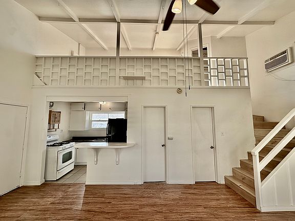 With dramatic ~18 ft ceilings, a real wood-burning fireplace, and a versatile lofted sleeping area, this unique space feels like a hidden artist's retreat all tucked behind two similar units on a classic Van Nuys multi-unit street.