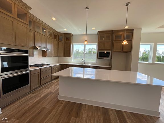 Welcome to this exquisite Paddock ranch-style home, a blend of luxury and comfort situated on nearly half an acre. Boasting four spacious bedrooms and four and a half baths, this residence is perfect for families and guests. Step inside to discover 10-foot ceilings throughout, accentuating the open and airy feel. The main floor features beautiful wood flooring, adding warmth and elegance. The formal dining room stands out with its rustic ceiling beams, creating an inviting atmosphere for gatherings. The gourmet kitchen is a culinary dream, equipped with custom cabinetry extending to the 10' ceiling, upper cabinets have glass doors with lighting.The undercabinet lighting accentuates the gorgeous tile backsplash to the ceiling. Double ovens, Gas cooktop stainless steel vent hood and a huge quartz center island make entertaining a delight. The family room fireplace with a stone surround provides a cozy focal point. Large windows flood the space with natural light, leading to the rear covered porch overlooking the serene backyard and view of nature. The owner's retreat is a sanctuary with soaring ceilings and windows and an en-suite bath featuring a supershower, dual vanities, framed mirrors, and 2 huge walk-in closets. Guest suite with full bath and tiled walk-in shower is great for guests, the Retreat area offers a separate space for occupants of bedrooms 2 and 3 to enjoy. The finished basement with 9' is deal for a home theater, game room, or additional living area to enjoy. Full bath in basement allows for easy access when entertaining. High-end design selections throughout this beauty of a home. Lakes at Grantham by David Weekley Homes offers a community that is surrounded by Nature Preserves and ponds giving a serene feel, yet within minutes of HSE Schools, entertainment, shopping, restaurants, Geist Lake, parks, etc.