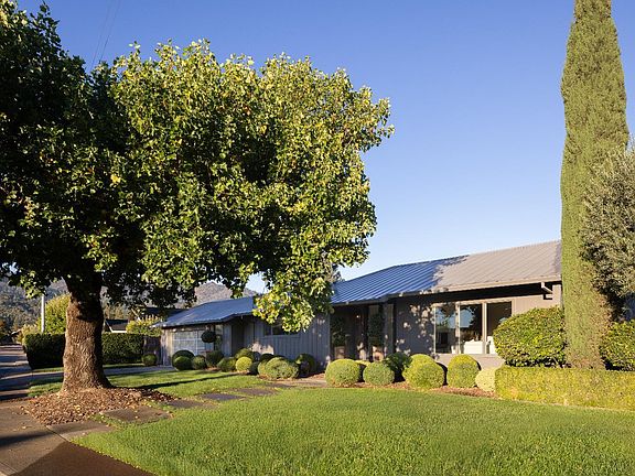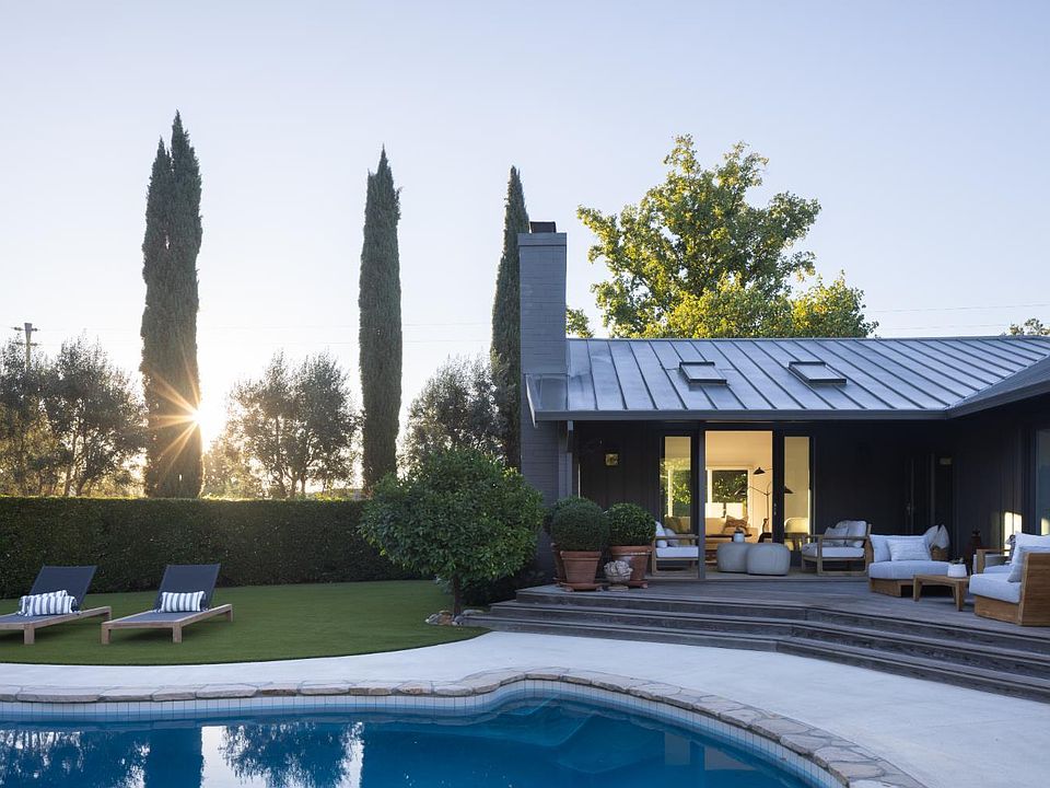 A Zen-Infused Mid-Century Retreat in the Heart of St. Helena. Set on a coveted corner along Arrowhead Drive, a peaceful, non-through street moments from downtown St. Helena this beautifully updated and meticulously maintained Mid-Century Ranch-style home embodies sophistication, privacy, and effortless indoor-outdoor living. Designed with modern minimalism and surrounded by mature gardens, it radiates calm and balance...an oasis hidden behind hedges yet closely connected to the vibrant Napa Valley lifestyle. The home's distinctive T-shaped layout creates three wings, each with its own connection to the outdoors. Vaulted ceilings and clean architectural lines define the open living spaces, centered around a marble kitchen island, custom cabinetry, and premium appliances by Sub-Zero, Miele, and GE Monogram. Living and dining areas extend to skylit patios, a covered lounge with outdoor fireplace, and a sparkling pool deck ideal for both quiet reflection and lively entertaining. Each of the three bedrooms opens to curated gardens and terraces, blending light, greenery, and design. Set among other distinctive homes, this tranquil retreat offers a rare opportunity to own a thoughtfully crafted, turn-key sanctuary in one of Napa Valley's most desirable enclaves.