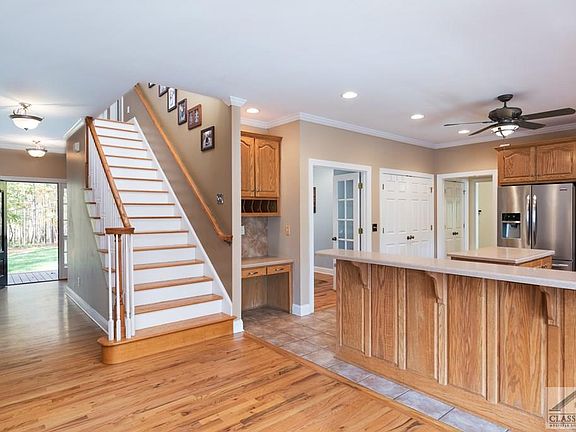 Custom built brick home on 10 acres in Jackson County. Almost 3000 square feet of living life space in a spectacular floor plan. The main level features an open foyer entryway, large dining room, cozy family room with fireplace & built-ins, custom kitchen with island, sunroom with vaulted ceilings, & a bedroom bath. Upstairs there are more bedrooms including the master. The master is a true suite with trey ceilings, fireplace, & bathroom complete with double sink vanity, separate shower & bathtub. Hardwood floors or tile throughout. Wraparound porch completes the outdoor space. Small creek bordering property.
