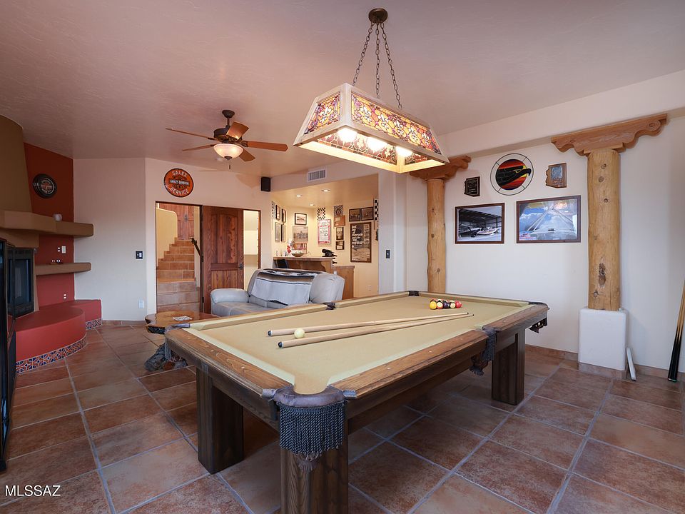 Located in the gated community of Los Arroyos Del Oeste, this stunning 3,667 sq. ft. Southwestern-style home offers breathtaking 20+ mile views of the Catalinas, Rincons, and City Lights. Set on 1.43 saguaro-studded acres, the resort-style backyard features a Pebble-tec saltwater pool with passive solar, built-in BBQ, outdoor fireplace, and spacious covered patio. Inside: 3 bedrooms, 4 baths, a rec room with kitchenette, office (could be 4th bedroom or guest quarters), & multiple living areas. The luxurious primary suite boasts a gas fireplace, soaking tub, large walk-in closet, and private view porch. Dual cooling, newer HVACs, central vac, and more. Did I mention the Spectacular Views? Close to hiking trails and town but sheltered in its own rural Saguaro studded paradise. Welcome Home