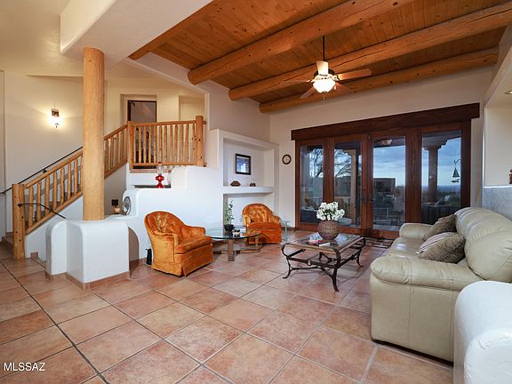 Located in the gated community of Los Arroyos Del Oeste, this stunning 3,667 sq. ft. Southwestern-style home offers breathtaking 20+ mile views of the Catalinas, Rincons, and City Lights. Set on 1.43 saguaro-studded acres, the resort-style backyard features a Pebble-tec saltwater pool with passive solar, built-in BBQ, outdoor fireplace, and spacious covered patio. Inside: 3 bedrooms, 4 baths, a rec room with kitchenette, office (could be 4th bedroom or guest quarters), & multiple living areas. The luxurious primary suite boasts a gas fireplace, soaking tub, large walk-in closet, and private view porch. Dual cooling, newer HVACs, central vac, and more. Did I mention the Spectacular Views? Close to hiking trails and town but sheltered in its own rural Saguaro studded paradise. Welcome Home!