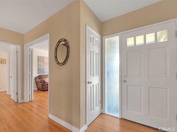 Upon entry, you’ll be greeted by an inviting open concept spacious living and dining area showcasing exposed wood beam ceilings, custom built display shelves and office nook. The heart of the home is the completely remodeled gourmet kitchen, featuring quartz countertops, subway tile backsplash, stainless-steel appliances including five-burner gas stove, breakfast counter, and abundant storage within beautiful white cabinetry. The formal dining area with two newly installed dual pane glass sliding doors provides access to the outdoor patio offering ample room for alfresco dining and entertaining guests year-round.