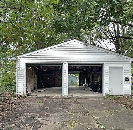 The down unit features 2 bedrooms and 1 bath, while the up unit offers 3 bedrooms and 1 bath, with the third bedroom located on the finished third floor for added living space. Sitting on a large lot, this property also boasts a rare 6-car garage, perfect for storage or additional rental potential.