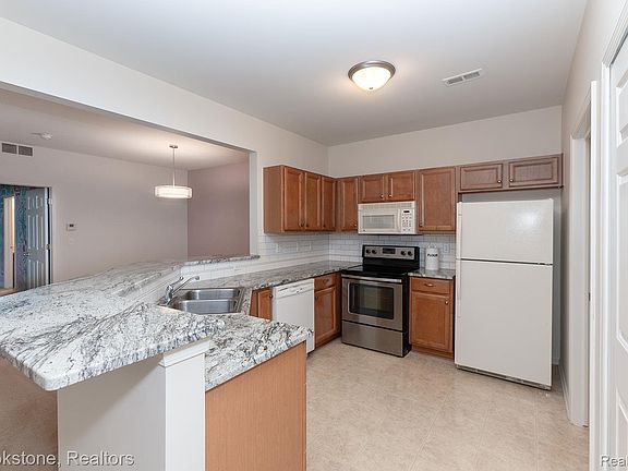 Welcome to this beautifully maintained 2 Bedroom 2 Bath Ranch condo in the desirable The Terraces at Northville Ridge Subdivision. Featuring granite kitchen countertops, a subway tile backsplash and in unit laundry, this condo is truly move in ready! The primary bedroom features a private bathroom, walk in closet and access to a covered porch perfect for a morning cup of coffee or a nice book! The spacious kitchen affords plenty of room for cooking and entertaining. The direct access, one car garage allows for ample storage space and easy access. Close to expressways, shopping and dining, all while enjoying the award winning Northville Schools! This one won't last!