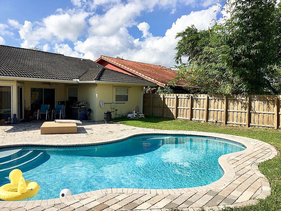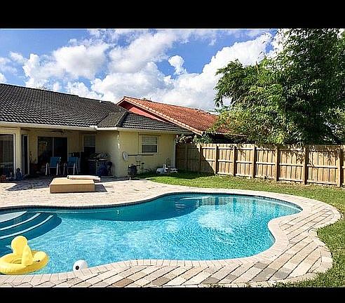 Great location for this 3 bedroom 2 bath plus office or extra room w outdoor POOL Super light and bright, open and airy. Tile floors in main living areas, laminate bedroom flooring, split bedrooms, vaulted ceilings, redone baths, large open kitchen w/ stainless steel appliances, formal dining. Huge master shower w/ dual rain shower heads! Covered patio for outdoor enjoyment. Ample living and entertainment areas allows great flow. Open pool area has plenty of yard left. Possible room on the side for a boat. Inside utility room w/ skylight. Fully fenced pets welcome! First, last and 2,700 deposit $2,700 available Dec 7th possibly earlier.