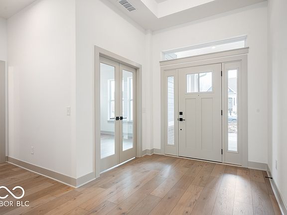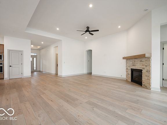 This ranch-style Bonner plan by David Weekley Homes offers thoughtful design and wooded views in Fishers, IN. The main floor features a spacious kitchen that flows into the family room with a cozy fireplace, creating a welcoming space for daily life and gatherings. A private study provides a quiet spot for work or reading, while a nearby retreat adds flexible space for relaxing or play. The Owner's Retreat is a true getaway, featuring a spa-like en suite with a super shower and dual vanities. A large walk-in pantry and finished 3-car garage add convenience and storage. Downstairs, the finished basement includes a large game room, full bath, and a private fourth bedroom, perfect for guests, entertaining, or extended living. Out back, enjoy the peace and privacy of a thick tree line from the deck, ideal for morning coffee or winding down in the evening.