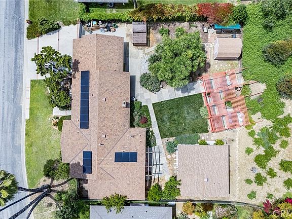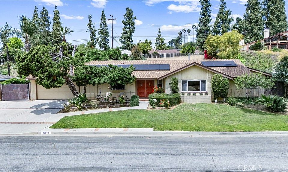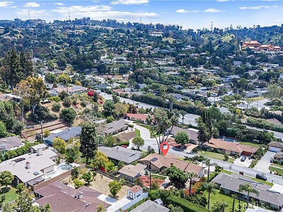 This beautiful single-level home is situated on a very large lot (15,300 SQFT) and is located on a quiet culdesac in a very desirable neighborhood in Hacienda Heights. This home has had only one owner. The 5 bedroom home has 2,022 SQFT. The inside of the home has been freshly painted and beautiful new vinyl wood-plank flooring was just installed. The kitchen has a garden window that looks out toward the street. Shortly after the home was built in 1961, an addition was built that provided two bedrooms, a family room, and a 3rd bathroom with inside laundry. The 3rd bathroom was recently remodeled/upgraded with new electric and plumbing. This home has solar panels (owned, not leased) which help to lower your electric bills. A new HVAC system was installed in 2023. The home has a soft water system. There is also a separate beautiful 450 SQFT Auxiliary Dwelling Unit (ADU) built in 2021. The ADU has 1 bedroom, a bathroom, kitchen, and small living room. The large, very private, rear yard includes a large grass area, a patio under a beautiful arbor with a fire pit, a raised-bed garden, and many fruit trees which include peach, pomegranate, avocado, Meyer lemon, Asian pear, Naval orange, and tangelo. There is a Tuff Shed for storing your patio and garden items. The two-car garage has a 220v charger for your Electric Vehicle (EV) charging. A concrete pad on the left of the house can be used to store a small travel trailer. There is a peek-a-boo view from the lot of the Hsi Lai Temple. The temple is within easy walking distance. The home is also easy walking distance to Grazide Elementary School. The home is only a very short distance to public transportation, a grocery store, restaurants, and the Puente Hills shopping area. Arrange to see this amazing property today!