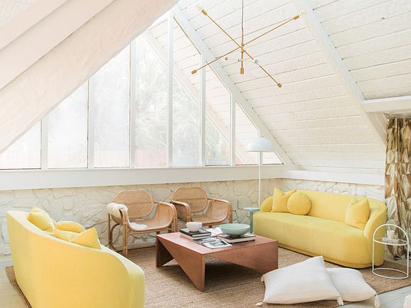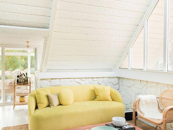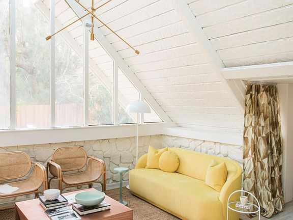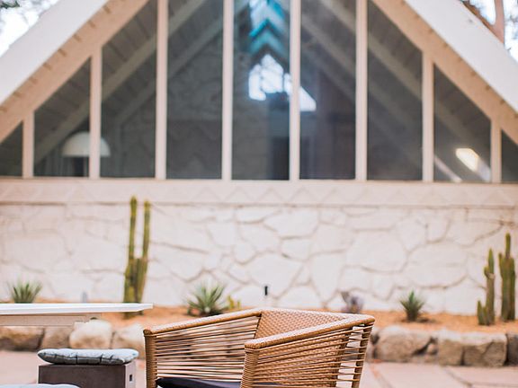 10 minutes from the Modern Mecca of Palm Springs tucked into a private cove of olive groves at the base of Mt. San Jacinto is the charming, bohemian village of Snow Creek with a Joshua Tree vibe. This beautiful architectural A Frame home is located on a large, private lot with magnificent views of the mountains. The peak of the A line roof is set with skylights and windows that look to the garden and the incredible mountains rising just beyond. A saltwater pool and fire pit have been recently added. In addition to the large bedroom suite, there is also a sleeping loft and an alcove off the living area where another bed can be tucked. A gardening shed has been transformed into an alternate writer's room or hang -out space. The home has been beautifully updated and features high-end finishes. Current interior design by Sarah Sherman Samuel, Anne Sage and Caroline Ingraham Lee and recently featured on AD, Domino and Sunset magazine. HOUSE IS SOLD FULLY FURNISHED! Come let us show you this special hideaway in the desert.
