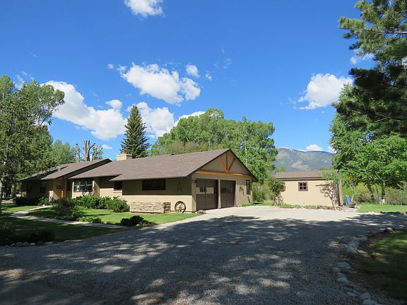 Stunning creek frontage home. Golf course location with mature landscaping. Inviting floor plan, elegant master suite, lasrge bedrooms + 2 fireplaces. Enjoy the majestic views from the back patio overlooking Cottonwood Creek. Incredible creek frontage from inside and outside plus garden space, private setting and paved access from town. Two car garage with nice workshop. Great VRBO rental history. A must see home!