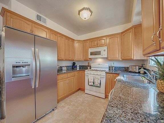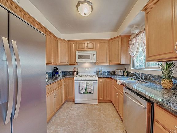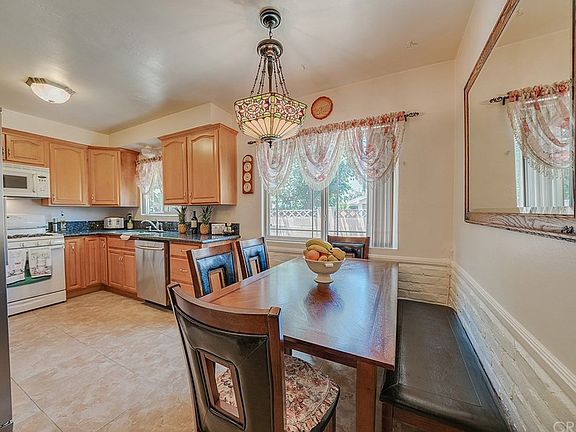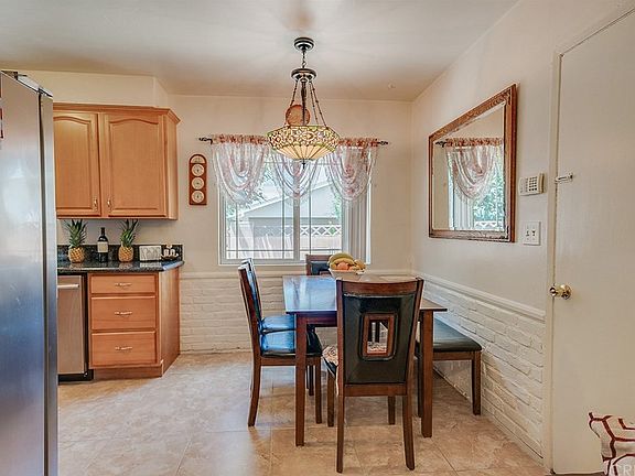 Exquisite curb appeal attracts you to this family home, located in a friendly "North Hills West" neighborhood. This turnkey home features three bedrooms, two bathrooms, 1,650 sqft. of living space, hardwood and tile floors. The inviting open floor plan welcomes into a step down living room boasting gorgeous wood floors, elegant draperies, a brick fireplace with raised hearth, adorned with mirrored panels. Celebrate family dinners in the spacious formal dining area, highlighted by a chandelier and tile floors. There is a cozy den off the kitchen perfect for relaxing with family after a long day. The remodeled kitchen includes granite counter tops, fine cabinetry, dishwasher, gas stove and oven, stainless steel refrigerator, pots and pans pull out drawers and a cozy breakfast area. Double doors lead you to the private master suite, enhanced with original hardwood floors, a walk-in closet and en suite bathroom. The light-filled en suite master bathroom offers a large vanity and a step down stall shower. The two additional bedrooms boast hardwood floors and mirrored closet doors. The full hallway bathroom with a tiled shower over tub and large vanity. The laundry area with gas dryer hook up can be found in the direct access two-car garage with automatic garage door opener. Upgrades include double pane windows, a tankless water heater, rain gutters. Enjoy relaxing moments in the large cement backyard with covered patio, fruit trees, block walls for privacy and security.