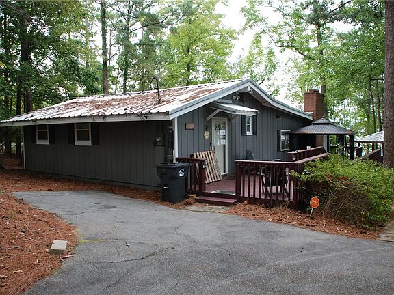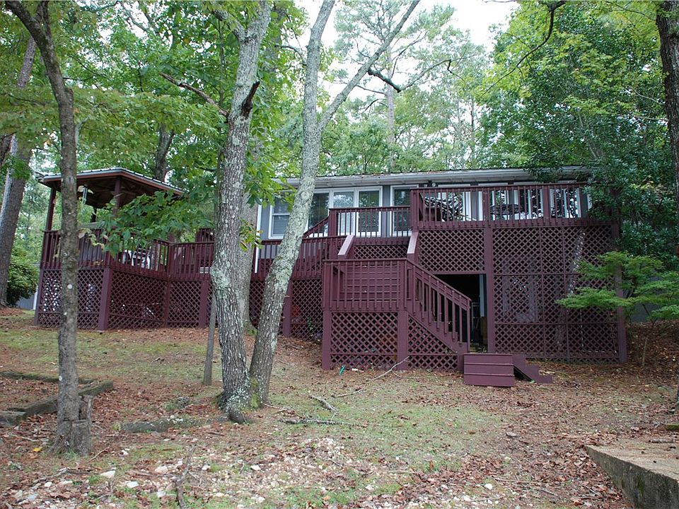 Your view is simply, water and trees. Looking due east at the Sandy Creek pass and a full moon rise from here is nothing shy of spectacular. This is located on Paces Point in the heart of Lake Martin and in the best area, but I'm biased. There are two lots total with Lot P54 being vacant and having .45 acres +/- and Lot P55 (that the house is located on) has .56 acres +/-. The driveway is crossing Lot P54, the wood sided storage building is on this lot and the field lines might possibly encroach onto this lot as well. Some of the contents of the storage buildings and dwelling might remain. This place is perfect for someone looking to live at the lake while they build a forever home next door. Be careful if you walk on the boat slip pier, there's some rotten boards near the end.
