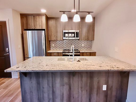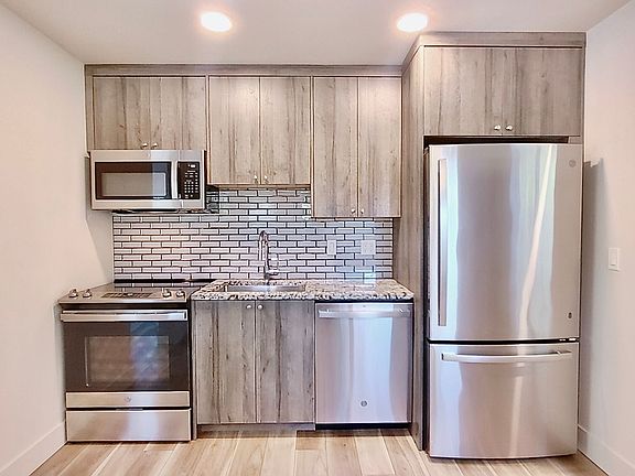For those who love to cook, the kitchen is exquisitely designed with custom wood cabinets, modern stainless steel appliances, and custom subway tile backsplash, creating a high-end culinary environment. While you're preparing your favorite meal, you are connected to the living space with the spacious island that has room for seating, making it perfect for hosting.