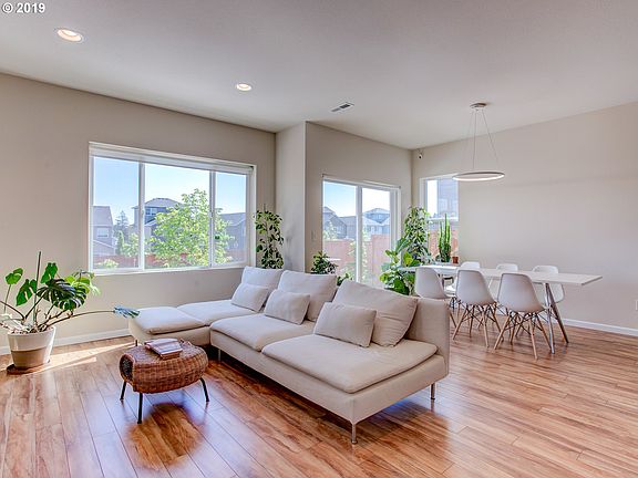 Straight out of a Dwell magazine! Impeccably maintained newer construction. Light and bright open floor plan with gorgeous birch hardwoods! 4 BR/2.1 BA+Tech Nook. Kitchen-gas stove, stainless appls. Upgraded modern lighting. Beautifully landscaped w/ zen garden, raised beds. Nice private yard backs to no neighbors. Community pool, basketball court, playground, trails, dog park and clubhouse. Close to New Seasons, shopping. A++ Schools!