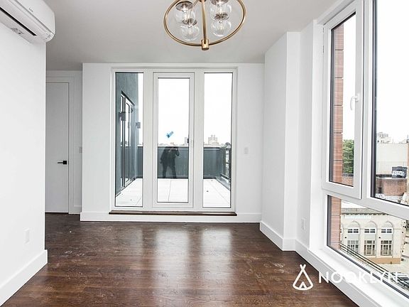 Video Shopwing Available Huge Semi Private RoofDeck 1 Bed / 1 Bath at 1595 Broadway - Unit: 3E-2 in Bushwick, Brooklyn. All Pets Allowed. Nearby subway stations include: Halsey St (J). This new building is situated conveniently right next to the Halsey J Train. The owners spared no expense to make these apartments perfect. This one bedroom has a huge backyard , and includes top of the line stainless steel appliances in the kitchen and bathroom, and has a ton of natural lighting. The bedroom is sizable and can fit a queen size bed. Enjoy access to the roof, bike storage, laundry in the building, secured entry, and a gym!
