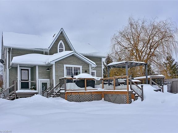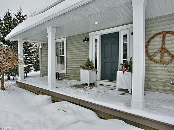 Country living just south of Stayner but with municipal water! Short drive to Wasaga Beach, Collingwood and Blue Mountains. Easy commute to the GTA or Barrie. This updated home offers gourmet eat in kitchen with stainless appliances, quartz counters and deep under mount sink.. Huge centre Island. Hardwood floors throughout. Eating area/den area with views to to back and sliding doors to the deck area with hot tub. Upper level has three generous bedrooms. Master has walk in closet plus spa like ensuite with walk in tile and glass shower, heated floors plus free standing soaker tub. Fully finished basement with walk up has heated floors, two bedrooms and three piece bath. this would be ideal for an in-law suite. Detached double garage with stairs to loft storage. Great backyard for a pool!