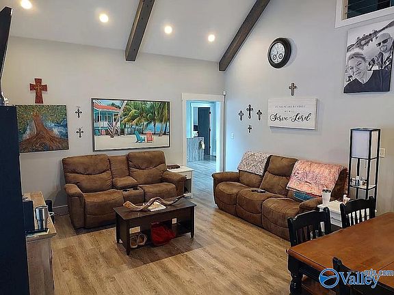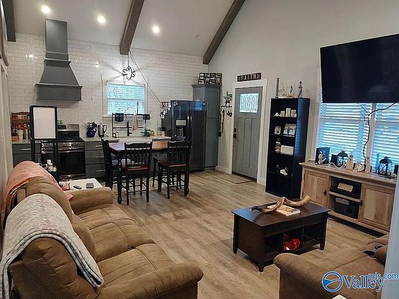 Gorgeous Custom Built Craftsman Style Home. Nestled on 7 +/- Ac. approx. 200' of waterfront on Neely Henry Lake. Soaring 17' wood beamed ceilings, custom built island, large pantry & coffee bar, Subway tile, Stainless Steel appliances. Oversized master Ensuite, w/soaker tub, custom vanities, Tile Walk-in shower, large walk-in closet w/WD Hookup. Two other BR's on ML with large walk-in closets. Sunroom with hidden door to basement. 4 BR 2.5 BA home offers a unique opportunity to customize the downstairs area into an in-law suite, or a cozy guest room for visitors who want to enjoy fishing and the beauty of nature. Basement has been stubbed in for another full BA and room for second kitchen.
