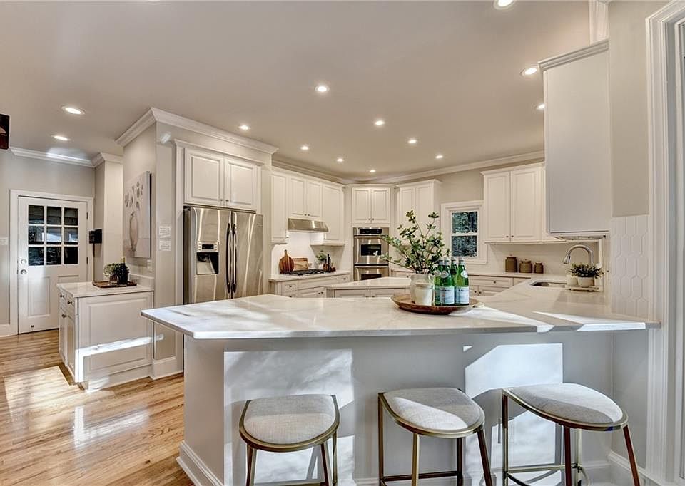 WOW!! UPDATE you won't want to miss!!! Run, don't walk to see this even more updated and magnificent property. The seller just had the most beautiful quartz counters installed in the kitchen at the end of Septrmber 2025. And to top it off also added was a stunning new designer backsplash, sink and venthood. YOU WILL LOVE THE NEW KITCHEN. This entire property is a slice of paradise on almost an acre in sought after Northcliff in Roswell. The sellers spent OVER $335,000 making this home a true showstopper! Rarely does a house so perfect hit the market in this gem of a neighborhood. Enjoy the conveniences of shopping, restaurants and schools with the amazing walkability to the Chattahoochee River which is right across the street from the entrance to the community. The sellers have renovated so much of this extraordinary home which means that you can move right in and start living YOUR best Life! The floorplan flows so beautifully and the architectural features are stunning. Prepare meals and enjoy family in the perfectly renovated kitchen. You will also appreciate top of the line cabinets, updated pantry, and new mudroom/drop zone. Relax in the lovely vaulted family room with beautiful wood beams, plus renovated 1/2 bath, primary on main with large bath and two custom closets, and a sunny office with pocket doors to the dining room. You will ADORE the double french doors to the spectacular screened porch and oversized deck. The outdoor space is pure magic and overlooks the most magnificent back yard, both private and useable. The seller removed many trees so that the yard is the very best version of itself. Upstairs the secondary bedrooms are spacious with large closets. Two secondary baths have been renovated with high end materials and lighting. Additional rec space with the cutest spiral staircase rounds out the second floor. A completely new terrace level will make your home THE home. It's a perfect place to entertain or simply relax. The terrace level, which was completely gutted and started from scratch, features a mini kitchen with quartz counters, new cabinets, new flooring, sophisticated full bath, wine storage, feature walls, coffered ceiling and a new paver patio steps away. The home also boasts an oversized three car garage which is rare in the community. New Roof. New Windows. New Lighting. Freshly painted both interior and exterior. Irrigation front and back. All new exterior doors with a beautiful double front door. The community is truly special boasts swim, tennis, playground, walking trails and wildlife in a beautiful setting. Walking distance to the Chattahoochee River and close to all of the wonderful things Roswell has to offer! Guard gate at the entrance. Welcome Home!