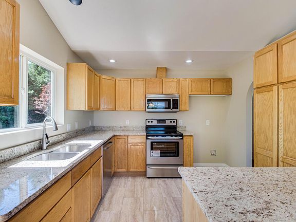 Amazing transformation and quality upgrades throughout. Wonderful kitchen with granite counters and stainless appliances. Lovely wood and tile floor coverings all in earth tones. Freshly painted in and out. Master suite and 2 bedrooms up. Large family room and bath down. Deep double garage plus RV/toy parking area. 2 level deck looking out over a park-like fenced yard with ample room for relaxing or entertaining. Quiet cul-de-sac living with easy access to schools and shopping. Offers will be reviewed 5/9 at 3pm.