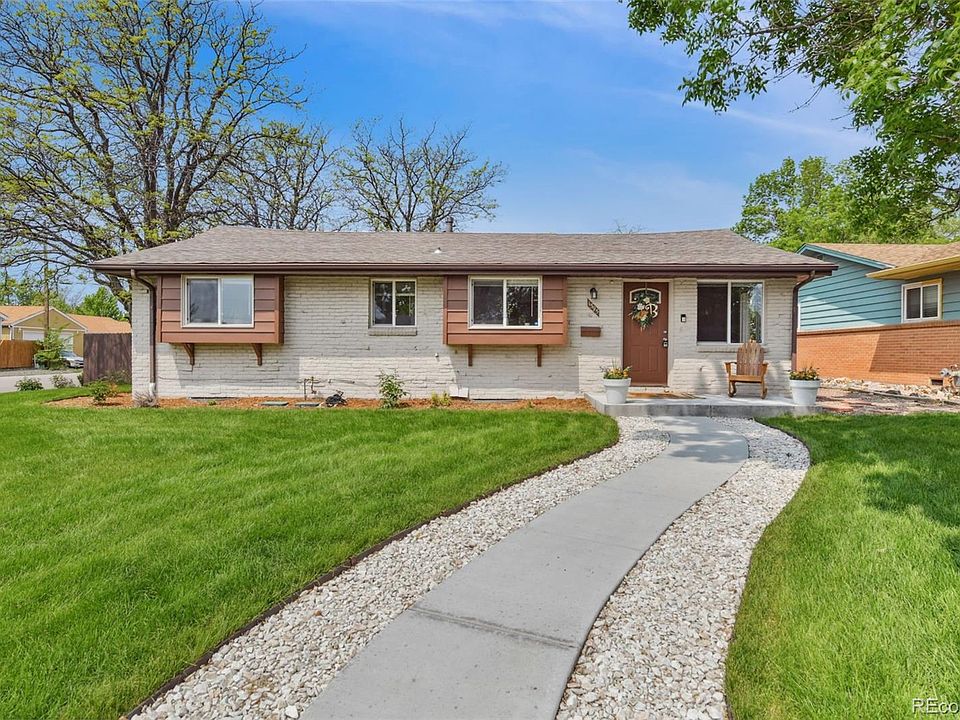 Don't miss this beautifully updated brick ranch home on a corner lot in Mar Lee. This 4 bedroom, 3 bathroom home seamlessly blends modern upgrades and timeless charm. The open-concept living area features new luxury vinyl plank flooring, a spacious living room with electric fireplace and dining room which flows into the modern kitchen with ample granite countertops and newer stainless steel appliances. The main floor boasts the primary bedroom with en suite half bathroom and the second bedroom adjacent to a full bathroom. The finished basement features a cozy family room, 3/4 bathroom, the 3rd and 4th non-conforming bedrooms and laundry room. Enjoy outdoor relaxation in the lovely landscaped and fenced-in backyard with new concrete pad patio and detached/oversized 2 car garage with shelving and work bench. Additional upgrades include a new electrical box ('22), new sprinkler system ('21), updated radon mitigation system, newer roof, newer furnace and more! Great location in Denver with easy access to grocery shopping, restaurants, Bel Mar shopping area and a quick commute to Downtown Denver. Schedule your private showing today as you as this great home will not last long!