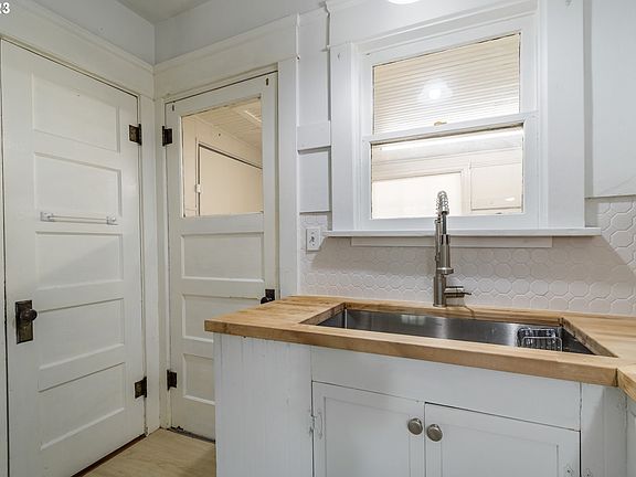 Corner lot Charmer! This house Bungalow has a remodeled kitchen Butcher block countertops- A large farm sink, fresh interior paint, new floors, and new appliances!