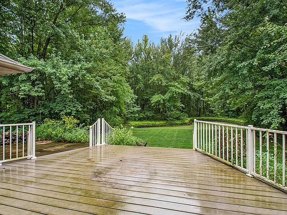 Walk-out basementHeavy woodsBeautiful ranch homePrivate pondBackyard deckOversized three-car garage