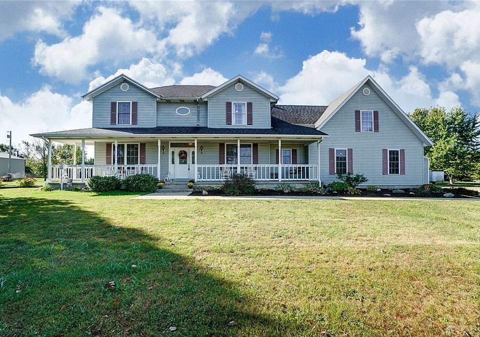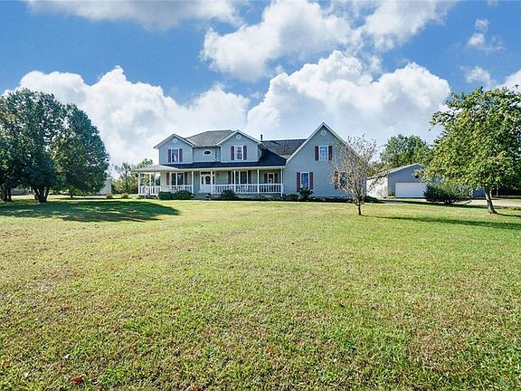 Extraordinary & Tranquil describes this 3100+square foot home. 4 bedroom 2.5 baths, including a master suite with jetted bathtub, dbl sinks,& a separate shower. The 4th bedroom is 23 x 14 & is currently being used a large home office. Whirlpool Kitchen appliances stay, new stove. All interior doors are 6 panel solid wood & all walls were built using 2x6" boards. The ceilings throughout the house are 9ft and the family room has a gas stove/fp and French doors allowing egress to the back patio. The kitchen has a breakfast bar and pantry. The unfinished basement allows the new owner to build it the way they want. The attached garage is an oversized 2 car, and there s an additional 30 x 40 ft building, that can easily store additional vehicles and it has its own furnace too, make it a great place to work on vehicles or even a great woodshop. The front porch stretches across the length of the house, providing a great place to sip that evening drink, while you watch some amazing sunsets.
