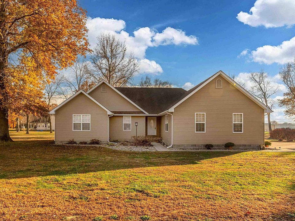 Welcome to this charming 3-bedroom, 2-bath ranch-style home set on 1.6 peaceful acres—the perfect blend of comfort, space, and country living. This well-maintained property offers an inviting floor plan with a warm, open feel throughout the living, dining, and kitchen areas. Large windows invite plenty of natural light, creating a bright and welcoming atmosphere. The home features three spacious bedrooms, including a comfortable primary suite with its own private bath. Both bathrooms are tastefully updated, and the home has been thoughtfully cared for inside and out. Step outside to your private oasis—an outdoor patio complete with a beautiful pavilion, ideal for relaxing, entertaining, or enjoying peaceful evenings under the stars. With 1.6 acres of level ground, there’s ample room for gardening, recreation, or future projects. The 32-48 pole barn provides plenty of room for the toys, workshop and storage and has a bathroom in it and a frost proof water hydrant. Whether you’re looking for privacy, convenience, or room to grow, this property delivers it all. Move-in ready and waiting for its next owner!