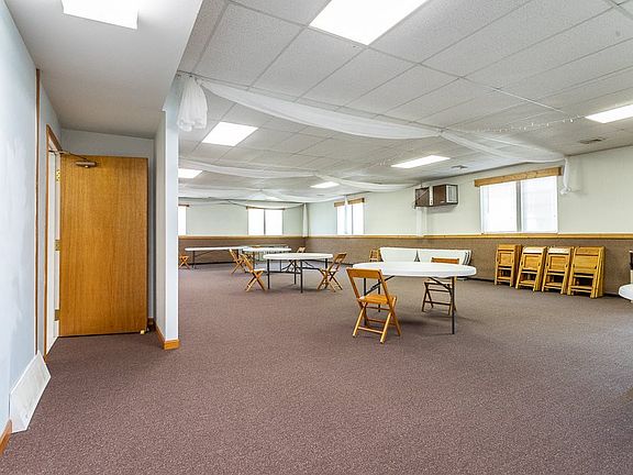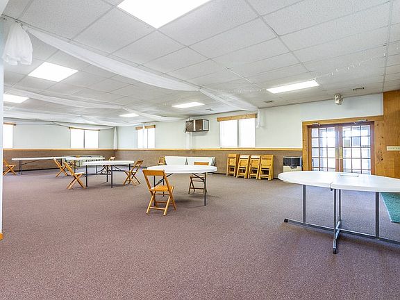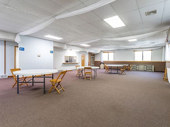 Former Rental Hall would work well for residence. Two buildings in good repair. Must see! This well maintained FORMER rental hall can be either rented as one large hall or broken up with a divider for two separate rental areas, depending on the need. Included in the main building is a kitchen, bathrooms and a large storage area for tables, etc. Also included is a large building on the corner that is currently owner storage but can be rented out for more income. Additional 1200 sqft heated storage potential for living space plus elevator! ** Appliances and MOST tables & chairs included in the sale. **