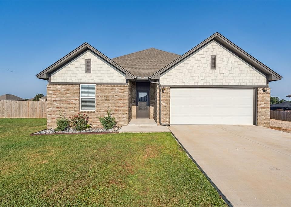 Immaculate 3 bed, 2 bath home with 1,500+ sq. ft. open floor plan. Features GE kitchen appliances, spacious primary suite with walk-in closet, 2-car garage with in-ground storm shelter, large backyard, and wood privacy fence. Corner lot in Falcon Point, family-friendly neighborhood with quick access to I-40 and Hwy 9. Approx. 35-minute drive to Edmond.