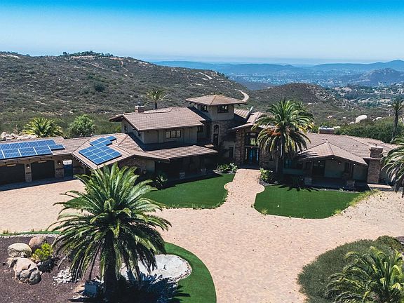 Perched in the hills of Poway, 15955 Running Deer Trail is a rare architectural estate offering luxury, privacy, and sweeping mountain-to-ocean views. Set on 9.24 acres, this 6,583 sq ft residence was designed by renowned San Diego architect Roger Mohling, known for landmarks like Old Poway Park and 15535 Westview Rd, which sold for an impressive $784/sqft in June 2025 for $5,667,000 just down the street! The home features 5 spacious bedrooms and 7 baths, including a luxurious entry-level primary suite designed for comfort and convenience. Soaring ceilings and walls of windows flood the interior with natural light while framing the stunning surroundings. The open floor plan offers seamless flow between expansive living and dining areas—ideal for both intimate gatherings and large-scale entertaining. A private study, oversized garage, and abundant storage enhance the home’s function and livability. Outside, enjoy a resort-style pool and spa set in complete privacy among mature landscaping. This home is perfect for families seeking space, comfort, and elegance, as well as investors looking for an add-value property. Priced aggressively to sell quickly, 15955 Running Deer Trail combines architectural pedigree, exceptional scale, and unmatched natural beauty in a truly one-of-a-kind setting. Buyer to verify all information and do their due diligence prior to COE.